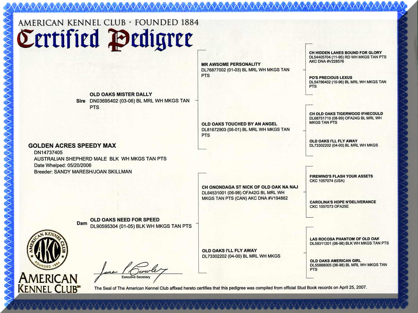 Golden Acres Speedy Max - AKC Pedigree (DN14737405)